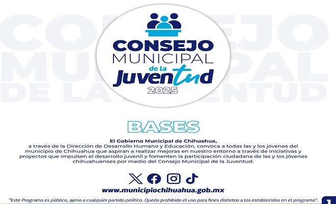 Ciudad de Chihuahua.-La Dirección de Desarrollo Humano y Educación, reitera la invitación a jóvenes de 15 a 29 años, a formar parte del Consejo Municipal de la Juventud 2025, que busca mejorar el entorno a través de iniciativas y proyectos de orden social, educativo, altruista, seguridad y ecológicos.