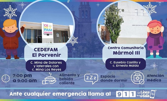 Asimismo, reiteran a no bajar la guardia antes las bajas temperaturas. A las personas que ingresen a estos espacios, se les recuerda que se ofrece alimento y bebida caliente, un lugar para dormir, cobijas y atención médica.