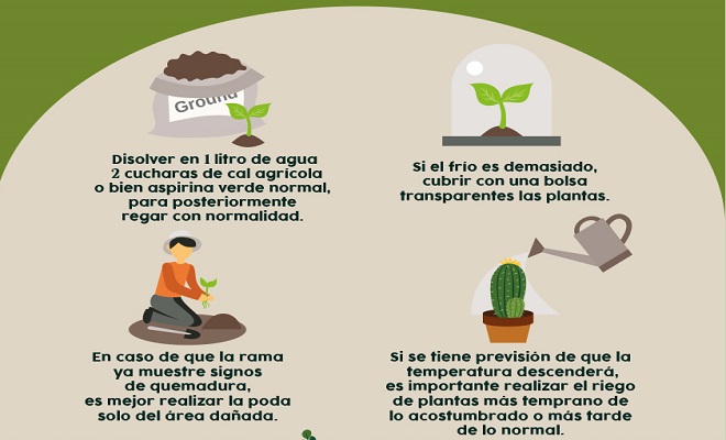 – Si se tiene previsión de que la temperatura descenderá, es importante realizar el riego de plantas más temprano de lo acostumbrado o más tarde de lo normal.