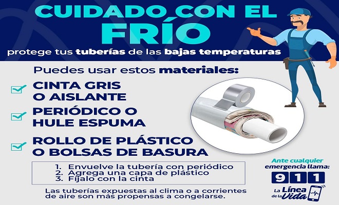 –Recomienda cubrir tuberías con aislantes para evitar fugas y conducir con precaución por zonas donde exista congelamiento.