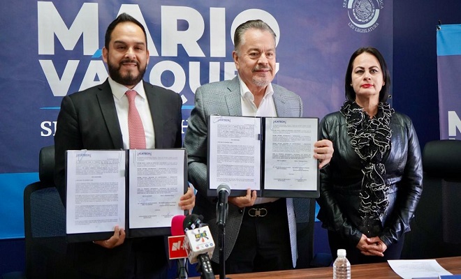 Ciudad de Chihuahua.- Con el objetivo de brindar a la ciudadanía herramientas para su superación el Senador del PAN, Mario Vázquez Robles realizó una firma de convenio con el Instituto de Capacitación para el Trabajo del Estado de Chihuahua (ICATECH) para otorgar capacitación gratuita en oficios y habilidades laborales.