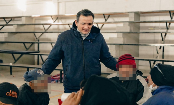Ciudad de Chihuahua.- El alcalde Marco Bonilla y la presidenta del DIF Municipal, Karina Olivas, realizaron una visita de supervisión en el Refugio Temporal abierto en el Centro Comunitario de la colonia Mármol III, donde pasaron la noche 17 hombres y dos mujeres, ante las bajas temperaturas.