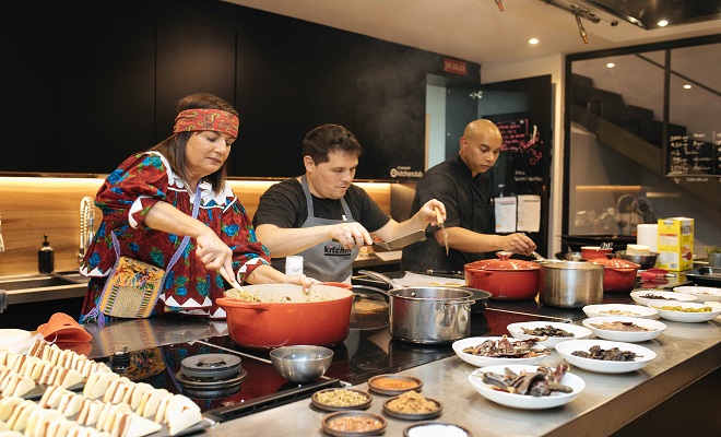 Los asistentes aprendieron a rellenar gorditas de maíz azul con pierna de cerdo en salsa de chile colorado, descubrieron y saborearon los ingredientes típicos del estado, como la carne seca, la machaca, el queso memonita y una variedad de salsas y chiles.