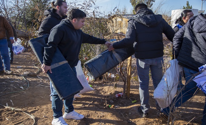Ciudad de Chihuahua.- La Dirección de Desarrollo Humano y Educación municipal, continúa con la entrega de cobijas, despensas y hule negro para cubrir goteras como parte de las actividades del Plan de Acción Invernal para minimizar los efectos de las bajas temperaturas.