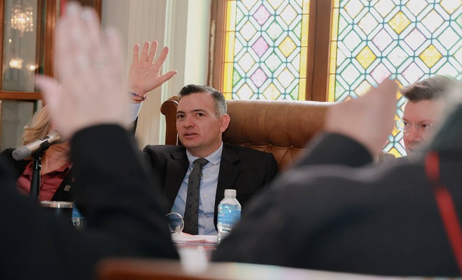 Ciudad de Chihuahua.- El Ayuntamiento de Chihuahua aprobó por unanimidad la iniciativa del alcalde Marco Antonio Bonilla Mendoza para crear la Coordinación de Bienestar Animal y Medio Ambiente, una de sus promesas de campaña, y al término de la reunión el edil comentó que ahora sigue trabajar en el organigrama, del reglamento interior y del manual de procedimientos para determinar sus funciones y facultades y se contempla empiece a trabajar a finales del primer semestre de este año.
