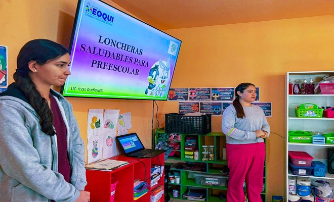 En el marco del Día Nacional del Nutriólogo, el Gobierno de Meoqui, a través de la Dirección de Salud en el municipio, llevó a cabo una plática informativa dirigida a padres de familia del Kínder de la comunidad de Nuevo San Lucas, impartida por los médicos pasantes de las Casas de Atención Primaria a la Salud, donde se abordó el tema de las loncheras saludables, destacando la importancia de evitar el consumo de comida chatarra en los más pequeños.