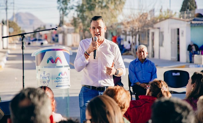 Ciudad de Chihuahua.- El alcalde Marco Bonilla, entregó otras tres calles pavimentadas con concreto hidráulico con una inversión de más de 6 millones de pesos, que benefician a cerca de 15 mil habitantes de la zona.