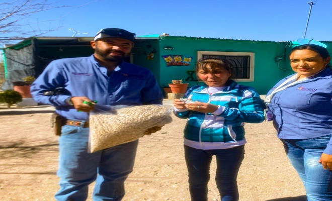 Meoqui, Chihuahua.- Un total 15 toneladas de frijol subsidiado fueron entregadas a los meoquenses, por gestiones de la Alcaldesa Miriam Soto en coordinación con Héctor Gallardo Carrera, Presidente Seccional de Guadalupe Victoria, con el objetivo de seguir apoyando la economía de las familias, tanto en cabecera municipal y las comunidades rurales como Potrero del Llano, 10 de Mayo, Las Malvinas, El Rosario, La Escuelita y La Chávez.
