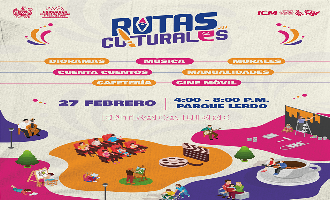 Ciudad de Chihuahua.- Con el objetivo de llevar la cultura a distintos puntos de la ciudad y aprovechar los espacios públicos como foros de expresión, el Instituto de Cultura, invitan al programa Rutas Culturales, que inicia el 27 de febrero a las 16:00 horas en el Parque Lerdo.
