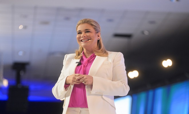 El evento se desarrolló en el Centro de Convenciones y Exposiciones, donde afirmó que sigue siendo ella quien comanda el barco, para enfrentar los retos futuros y dar resultados, como lo ha hecho desde su incursión en el servicio público.