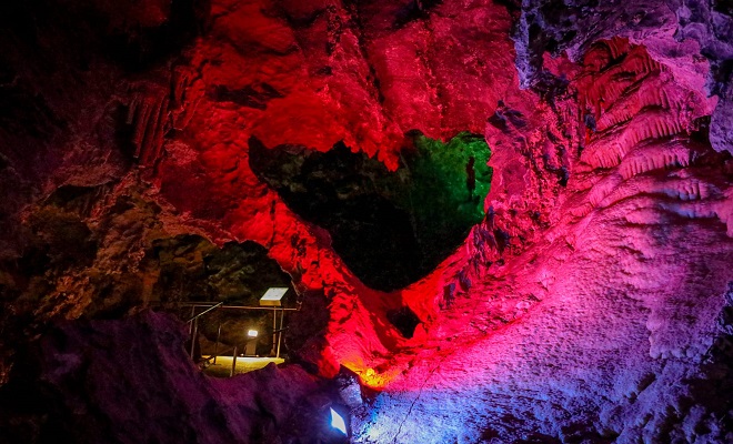 Ubicadas en la Vialidad Sacramento, este escenario natural, formado hace más de 5 millones de años, aguarda en su interior diversas formaciones rocosas que maravillan a sus visitantes, tales como El Dinosaurio, La Cascada, el Corazón, entre otras, que gracias a la iluminación colocada, pueden ser mejor apreciadas.