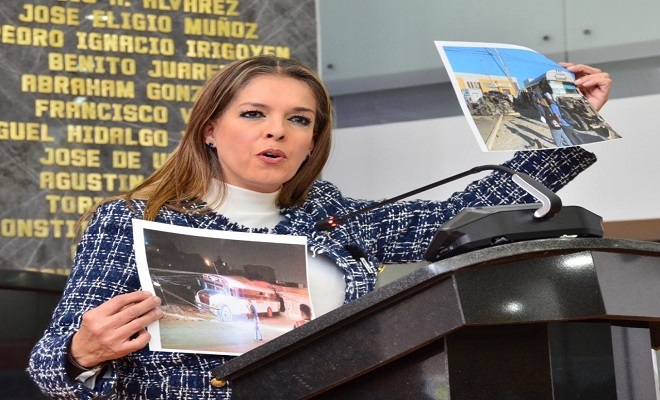 Chihuahua.- Ante la grave crisis de transporte público que vive Ciudad Juárez, la diputada por el Partido Acción Nacional (PAN), Xóchitl Contreras, presentó una iniciativa para castigar con cárcel a quienes operen camiones piratas y revocar concesiones a los transportistas que incumplan con la ley.