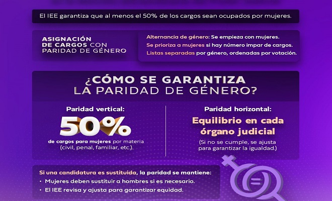 Aprueba IEE reglas para garantizar la paridad de género en elección Judicial
