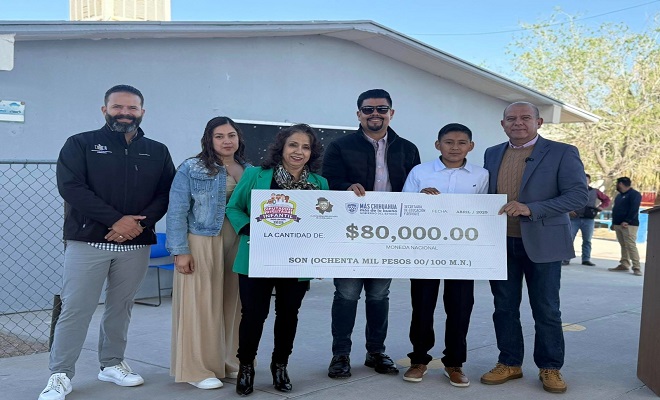 Chihuahua.- Cuauhtémoc Estrada Sotelo, diputado y coordinador del Grupo Parlamentario de morena visitó la Escuela Primaria ‘Constitución Mexicana’ para conocer al alumno que será diputado por un día el próximo Día del niño, así como hacer entrega de un cheque de 80 mil pesos para mejoras en dicha institución académica.