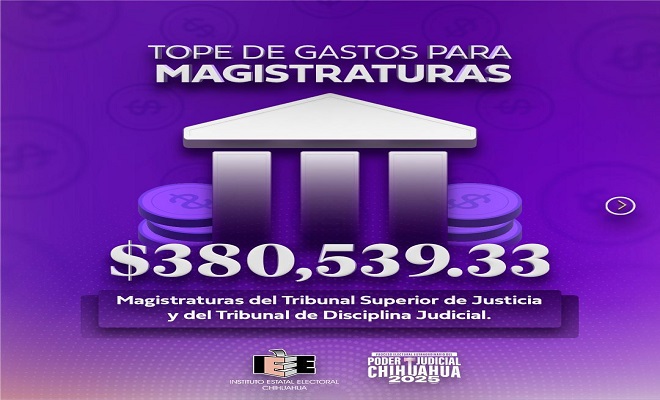 Para las candidaturas a las Magistraturas del Tribunal Superior de Justicia y del Tribunal de Disciplina Judicial, el tope aprobado es de $380,539.33 pesos.