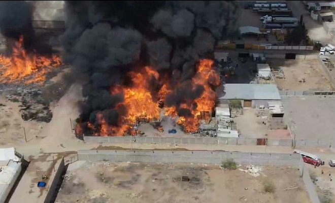Ciudad de Chihuahua.- La Dirección de Seguridad Pública Municipal y el Heroico Cuerpo de Bomberos se encuentran atendiendo el incendio registrado en una tarimera ubicada en la colonia Aeropuerto, para lo cual se procedió al desalojo en los alrededores de aproximadamente 100 personas de negocios y viviendas contiguas.