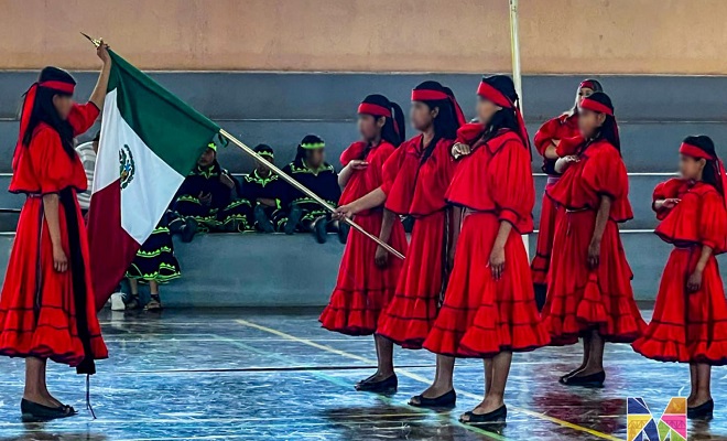 Meoqui, Chihuahua.- Las alumnas de la Escuela Indígena Niños Héroes de Meoqui participaron en un Concurso de Escoltas de Pueblos Originarios donde se contó con la presencia de 6 escuelas de los municipios de Jiménez, Parral Camargo, Delicias y Rosales, en el cual recibieron un reconocimiento por su destacada participación por su esfuerzo y dedicación tras meses de preparación.