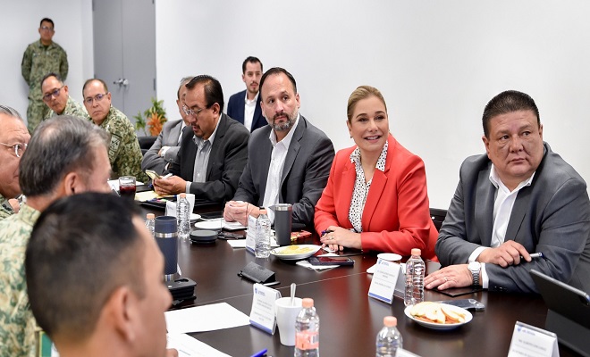 Chihuahua.- La gobernadora Maru Campos presidió en Ciudad Juárez, la sesión de trabajo de la Mesa Estatal de Construcción de Paz, donde acordó con autoridades de los tres niveles de Gobierno, reforzar en la región las campañas de prevención del delito y contra las adicciones.