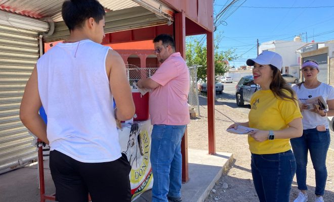 Ciudad de Chihuahua.- La candidata a Juez Civil por el Distrito Morelos, Daniela Michaus Chávez recorrió las calles de las colonias Arboledas y Américas con el propósito de escuchar los comentarios de los vecinos en torno a la impartición de justicia y hacerles llegar su mensaje para mejorar dicho ejercicio en el estado.