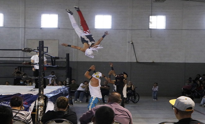 Ciudad de Chihuahua.- En el centro comunitario de la colonia Mármol III se llevó a cabo la primera función con el estreno del talento de la Escuela de Lucha Libre CUU, para impulsar esta disciplina en la ciudad de Chihuahua, con el apoyo del Gobierno Municipal a través del Instituto Municipal de Cultura Física y Deporte y el DIF Municipal.