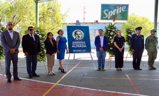 En el evento estuvieron representantes de la Secretaría de Educación y Deporte, autoridades de la 5/a Zona Militar, representantes del ámbito académico, alumnos de la escuela Francisco R. Almada, así como familiares de este gran político chihuahuense.