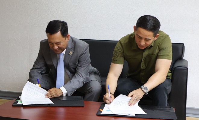Ignacio Rodríguez, secretario general de la UACH, se reunió con el titular de la DSPM, comisario Julio César Salas González, para dar formalidad a dicho acuerdo, que beneficiará a las y los agentes, quienes, a su vez, ofrecerán un mejor servicio a la comunidad.