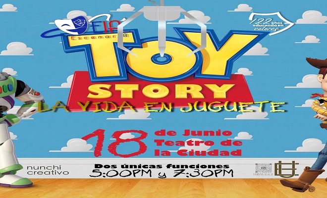 Ciudad de Chihuahua.- Este miércoles 18 de junio se presentará por parte del Instituto América a través de la compañía EscenarIA la obra Toy Story “La vida en Juguete” en el Teatro de la Ciudad con dos únicas funciones a las 5:00 y 7:30pm