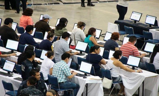 Por su parte la Secretaría de Educación estatal afirmó que recibió a los profesores y brindó facilidades para su instalación, en tanto se habilitaron las dos naves donde se dispusieron dos mil 400 equipos de cómputo para aplicar la evaluación.