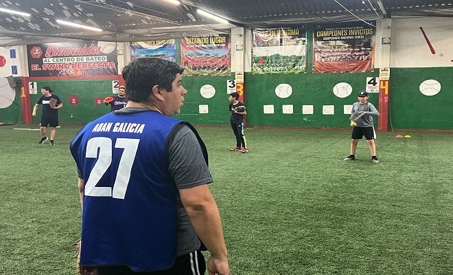 Adan Galicia entrena con peloteros de “El Swing Perfecto”