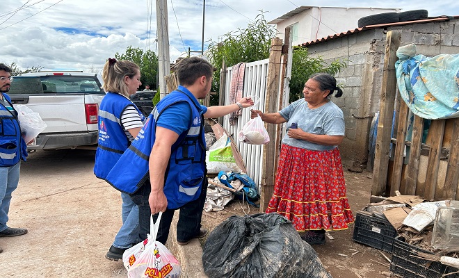 Ciudad de Chihuahua.- El Gobierno Municipal, por medio del DIF, llevó 100 pollos a las colonias El Porvenir, Los Minerales y Nuevo Triunfo tras las inundaciones que se presentaron antier por la tarde, y mismas que alcanzaron un volumen de 44 milimetros cúbicos. Lo anterior es como parte de las acciones para atender los estragos de las lluvias, así como para apoyar a familias afectadas.