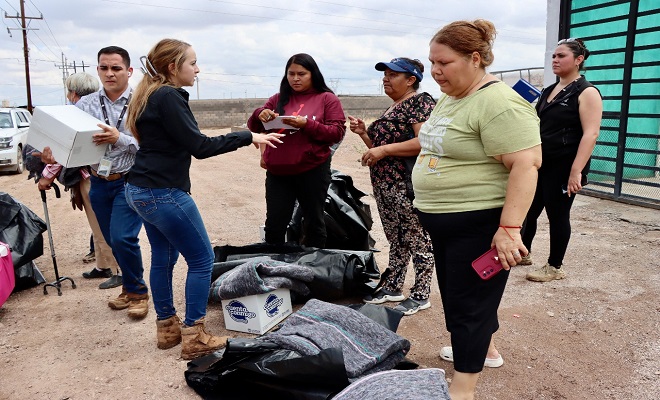 Chihuahua.- La diputada del Partido Acción Nacional por el Distrito 16, Carla Rivas, acudió junto a su equipo de trabajo a la colonia San Joaquín, ubicada al sur de la ciudad, para entregar apoyos alimentarios, hule y cobijas a las familias que más lo necesitaban.