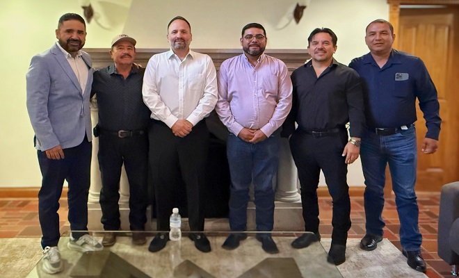 Ciudad de Chihuahua.- Encabezados por el diputado y coordinador estatal de Movimiento Ciudadano, Francisco Sánchez Villegas, los alcaldes de esta fuerza política sostuvieron un encuentro con el Secretario General de Gobierno, Santiago de la Peña, y el Secretario de Obras Públicas, Jorge Chánez, para gestionar inversión y obras para los municipios Naranjas.