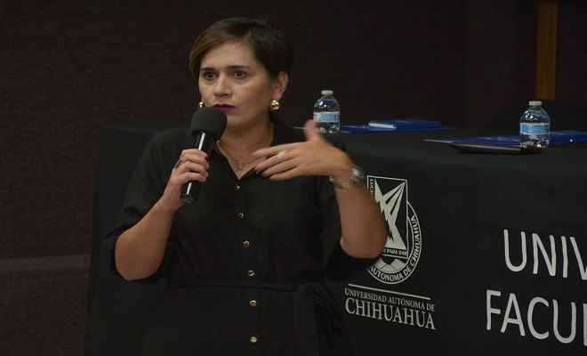 Ante esto se contó con la participación de la Dra. Martha Aurelia Dena Ornelas de la UACH, con la conferencia «La migración como negocio: paralelismos e intersecciones entre el tráfico y la trata de personas en la frontera Juárez- El Paso». Luego, la Fiscalía de la Mujer, a través de la Lic. Cynthia Mendoza, con la conferencia «Marco normativo y buenas prácticas desde el Estado de Chihuahua, en atención a la trata de personas».