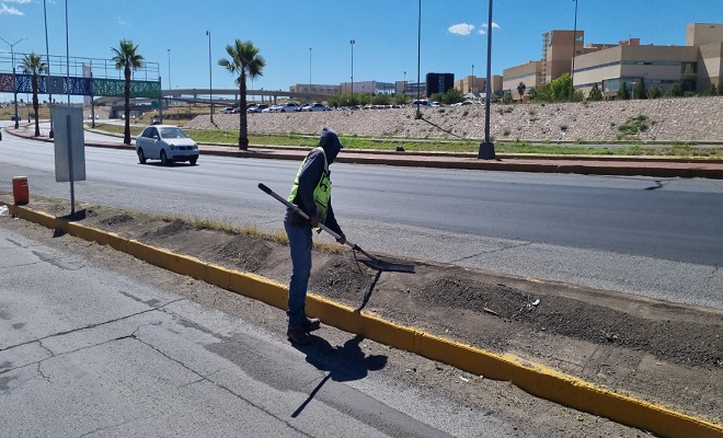 Ciudad de Chihuahua.-La Dirección de Mantenimiento Urbano, reforzó las labores de limpieza general en vialidades ubicadas al norte de Chihuahua Capital, esto debido al temporal lluvioso que se ha presentado en la ciudad.