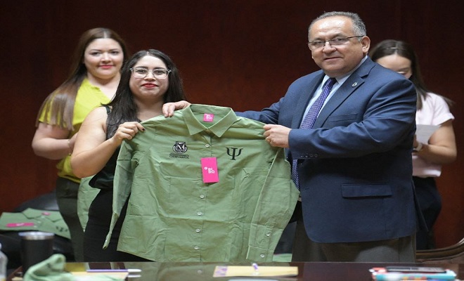 Ciudad de Chihuahua.- La Universidad Autónoma de Chihuahua, a través del Departamento de Atención Integral al Estudiante, realizó la entrega simbólica de camisetas al equipo de psicólogos universitarios, con lo cual se busca fortalecer el trabajo en equipo de quienes representan un eje fundamental de apoyo a la comunidad universitaria.