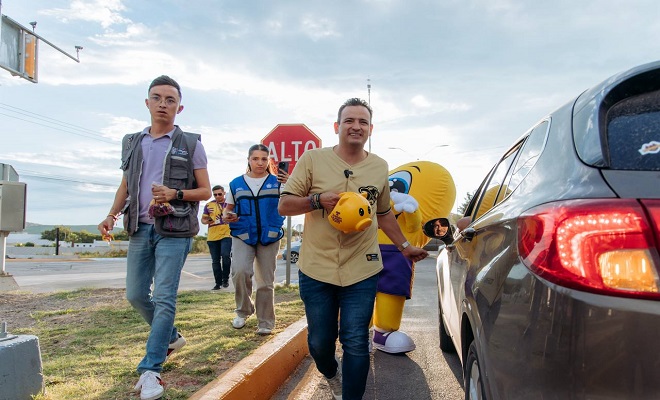 En el boteo en el que estuvieron presentes Guillermo Dumas, subdirector de alianzas y Efraín Monrroy director del CRIT, así como todo el equipo de trabajo que con su cochinito en mano llegaron a las ventanillas de los conductores.