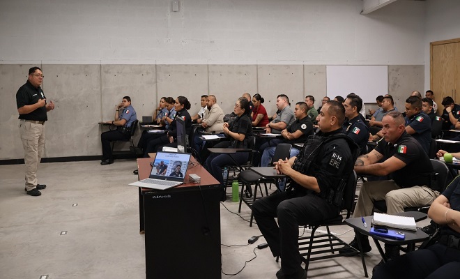 Ciudad de Chihuahua.- Policías de Pueblo Colorado impartieron una capacitación a policías municipales de Chihuahua en temas de manejo de droga, especialmente el fentanilo, curso que se brinda desde el Instituto Superior de Seguridad Chihuahua (ISSCUU), gracias al convenio de hermanamiento que existe entre ambas ciudades.
