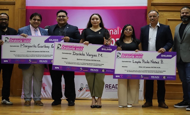 Chihuahua.- El Instituto Estatal Electoral de Chihuahua (IEE) celebró la gran final estatal del Concurso Nacional de Oratoria 2025 “Dr. Belisario Domínguez Palencia. Libres por la palabra libre”, con la entusiasta participación de diez finalistas provenientes de las eliminatorias regionales realizadas en Ciudad Juárez y Chihuahua capital.