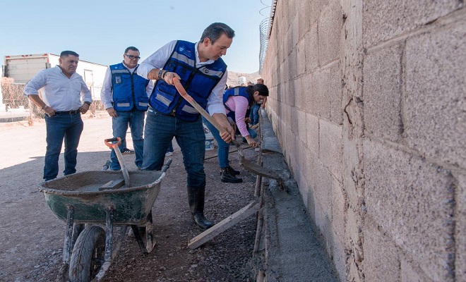 Ciudad de Chihuahua.- El alcalde Marco Antonio Bonilla Mendoza, realizó un recorrido de supervisión en la calle Encino e Industrias de la colonia Nombre de Dios, donde el Consejo de Urbanización Municipal (CUM) realiza la pavimentación con concreto hidráulico bajo el esquema de coparticipación ciudadana 50/50, donde el Municipio aporta la mitad y los vecinos la otra.