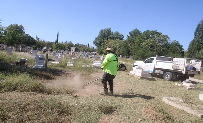 Lo anterior, con el objetivo de que aquellos ciudadanos que acudan en el Día de Muertos a visitar a sus seres queridos, encuentren los cementerios municipales limpios y bien atendidos, de donde, al momento, se han retirado un estimado de 23.5 toneladas de maleza y basura.