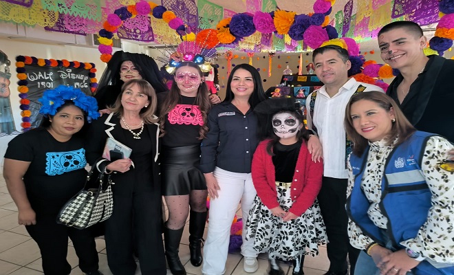 Y participa en festividades del Día de Muertos en la escuela Miguel Hidalgo #2142.