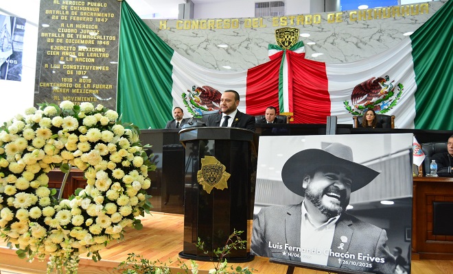 Chihuahua.- El Congreso del estado realizó hoy sesión solemne para recordar al diputado del PRI Luis Fernando Chacón Erives, quien falleció el pasado domingo de manera sorpresiva y a muy corta edad, a los 40 años, víctima de un infarto fulminante en su natal Guerrero.