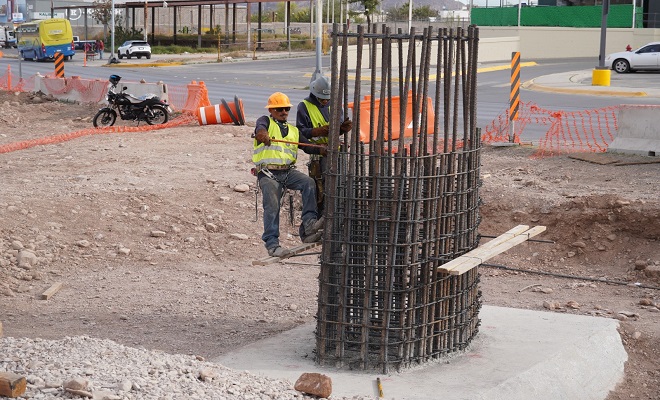 Los trabajos avanzan en tiempo y forma con la reubicación de líneas de alcantarillado y de conducción de agua potable. De igual manera, continúan las excavaciones para el desplante de zapatas, así como el habilitado y la colocación de acero para columnas y el vaciado de concreto en dados.