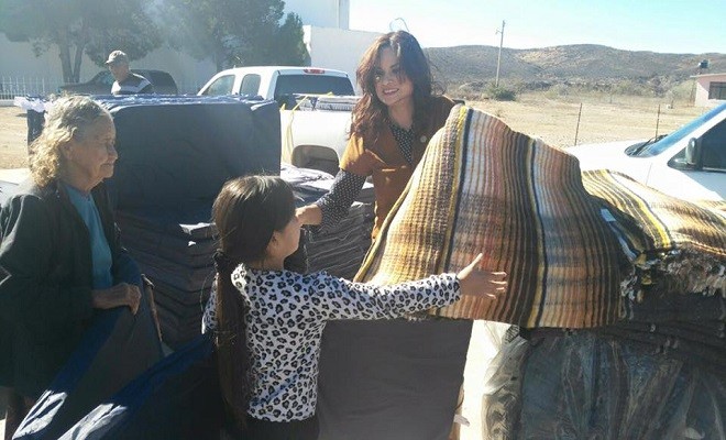 Acompañada del alcalde de Satevó, Mario Álvarez Tarango, la diputada federal del Partido Acción Nacional, Cristina Jiménez Márquez, entregó cientos de cobijas y colchonetas a los habitantes de aquel municipio.