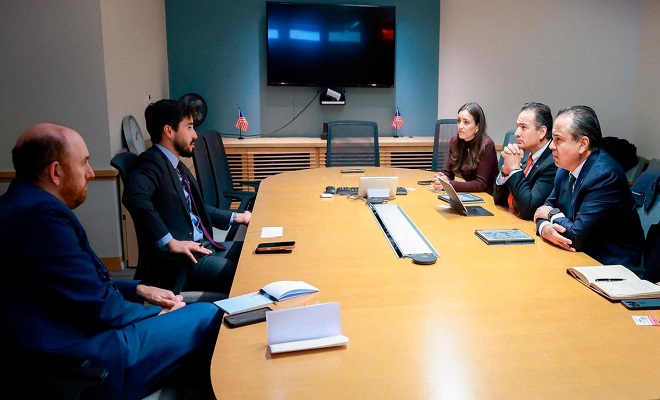 En reunión con Ricardo Pita, asesor principal para Asuntos del Hemisferio Occidental del Departamento de Estado, destacó la importancia de fortalecer mecanismos de cooperación en materia de seguridad, “platicamos con él todos los acuerdos que tenemos de hermanamiento con Nueva York, Colorado, Aurora con El Paso y Albuquerque y quedamos en mantener el dialogo para seguir fortaleciendo este tipo intercambio de experiencias”, puntualizó Bonilla Mendoza.