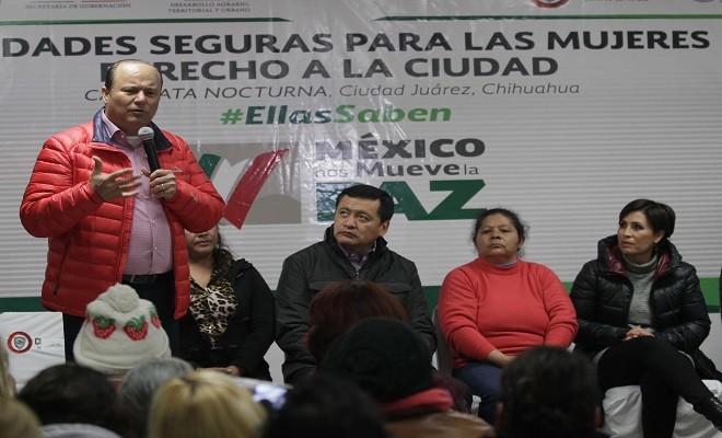 Ciudad Juárez, Chihuahua.- El secretario de Gobernación, Miguel Ángel Osorio Chong, la titular de la Secretaría de Desarrollo Agrario, Territorial y Urbano (Sedatu), Rosario Robles, y el gobernador de Chihuahua, César Duarte, encabezaron la primera caminata nocturna en Ciudad Juárez, como parte del programa Ciudades Seguras.