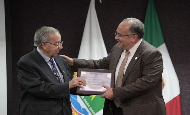 La Universidad Autónoma de Chihuahua realizó un homenaje a la trayectoria del profesor Felipe Vale Alférez, formador de generaciones e impulsor del deporte como eje de la educación integral, en un encuentro que reunió a autoridades universitarias, comunidad académica, familiares y amistades del reconocido docente.