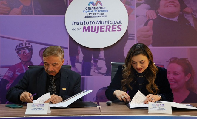 Ciudad de Chihuahua.- El Instituto Municipal de las Mujeres (IMM), firmó un convenio de colaboración con la Universidad Regional del Norte (URN), para integrarla como aliada estratégica en el programa de la Universidad de las Mujeres.