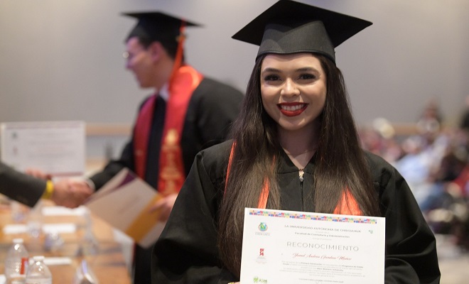 Ciudad de Chihuahua.- La Facultad de Contaduría y Administración (FCA) de la Universidad Autónoma de Chihuahua (UACH) celebró la graduación de la primera generación de estudiantes que concluyeron exitosamente el programa de doble grado, resultado del convenio de colaboración académica con la Western New Mexico University (WNMU).