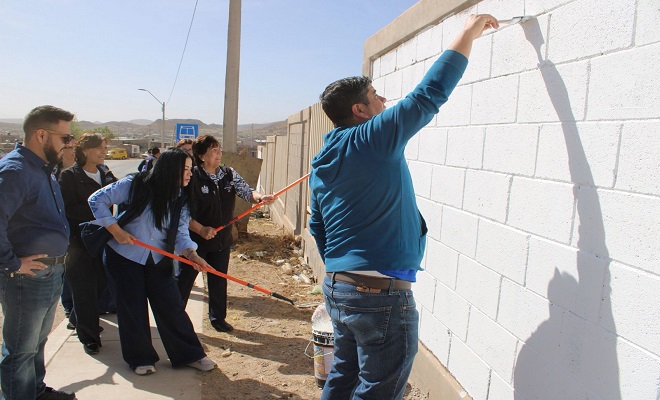 Como parte del compromiso adquirido, acudieron esta mañana al kínder para apoyar pintando la barda del plantel con el objetivo de mejorar la imagen del espacio educativo y generar un entorno más agradable para las niñas y niños.